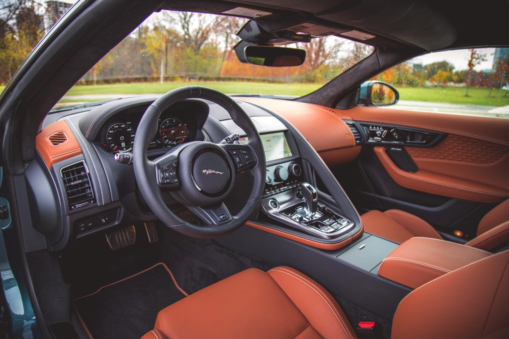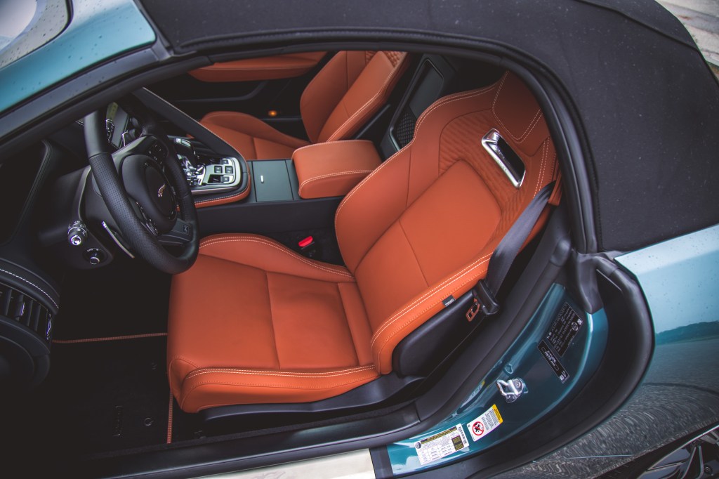 There are other neat features too like pop-out door handles, a front hood that swings up backwards, a hatchback-like lift gate like in the AMG GT, hidden cabin fan vents, and airplane-style switchgear and shifters. However, while the F-Type’s sheet metal has been refined over the years to keep pace with modern styling, the interior hasn’t. It’s the F-Type’s weakest area, and though we considered it stylish and chic back in 2014, it has aged incredibly quickly, blending together plasticky switchgear and an overall fit and finish that just hasn’t kept up with the times. The Extended Leather Package covers up some of the blemishes but it’s a shame they didn’t adopt the same cabin features as the current-gen F-Pace SVR earlier in the F-Type’s life cycle.
