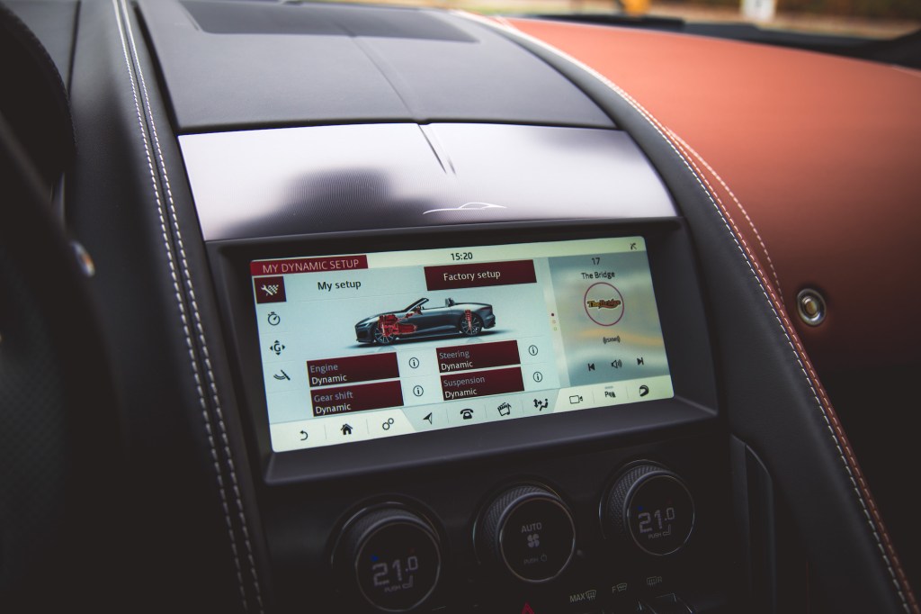 The steering wheel is a great size and ergonomic in shape with actual hard buttons and none of that fussy haptic touch nonsense you find in current Range Rovers. However, the flimsy paddle shifters feel less premium than those on a low-grade Logitech wheel. Cabin space is also tight, comparable to that of the Mercedes-AMG SL 63. Yet, it’s sorely lacking in both storage options and cubbies when compared to 2+2 rivals like the Lexus LC 500. The 12-way adjustable seats look great and appear thin, yet still provide a good amount of lumbar and lateral support. There is a fair amount of adjustment for my six-foot figure to find a cozy driving position but it’s slightly more limited in this convertible.