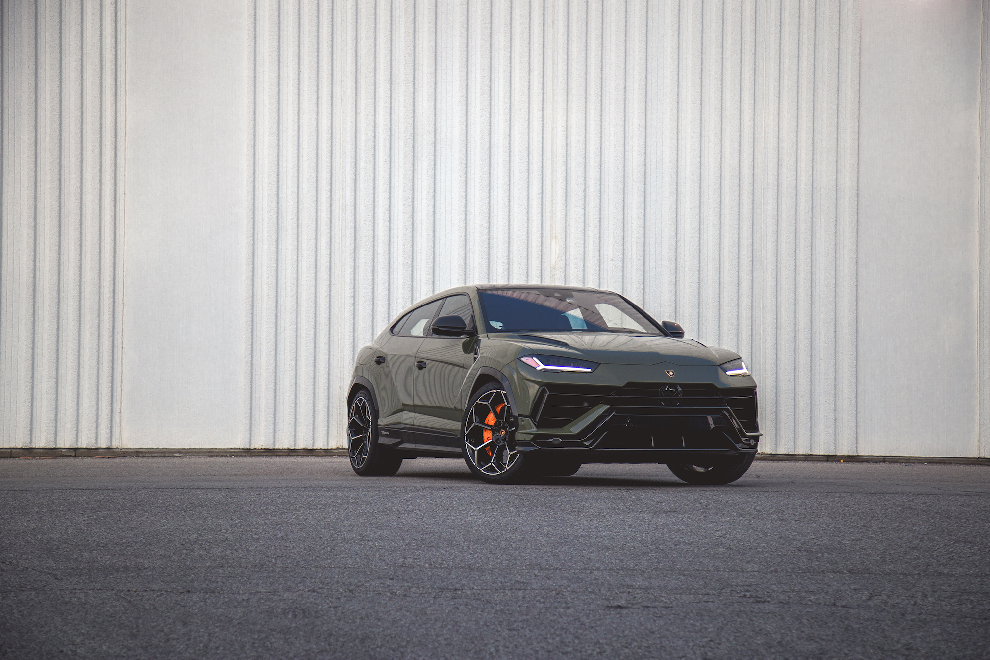 The visual muscle mass gained over the Urus S is noticeable, like it spent an entire winter hitting a German-owned gym, then shopped at an Italian boutique for a cardigan stitched up in Verde Turbine Lucido. It’s a paint colour offered through Lamborghini’s Ad Personam program and exudes military green vibes. The shade is unique, belligerent, and stands out from the generic yellows and blues we have seen strolling around.