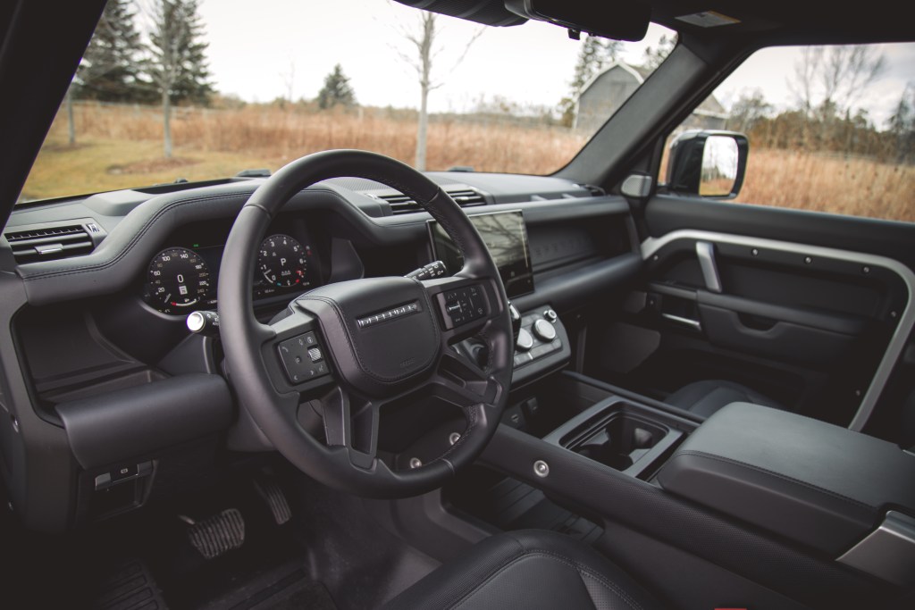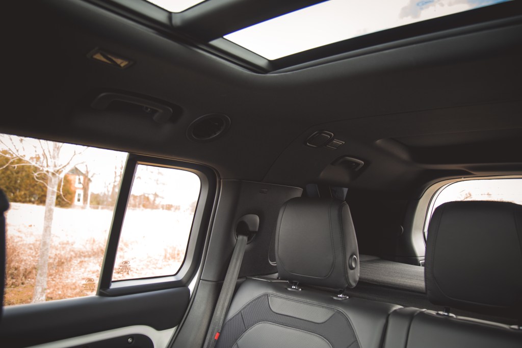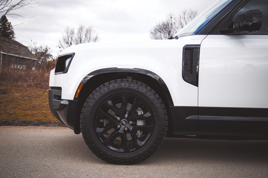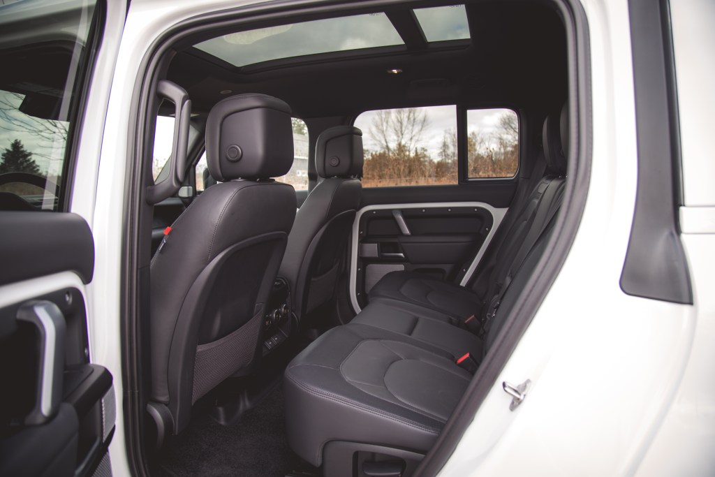 Equipped with a standard four-wheel drive system, a two-speed transfer case, locking differentials, and an adaptive air suspension, the 130 is not only off-road capable but rides very nicely on suburban roads. The Defender 130 we drove previously wore Pirelli Scorpion winter tires and wafted around nicely, adeptly neutralizing road oscillations better than any pickup truck on the market, thanks in part to its independent suspension and unibody construction. This Outbound wears Goodyear Wrangler Territory Duratrac all-terrain tires instead, and the ride quality is minimally impacted. Vertical oscillations are slightly more apparent and there is elevated tire noise seeping into the cabin, but it’s not severe enough to warrant a complaint.