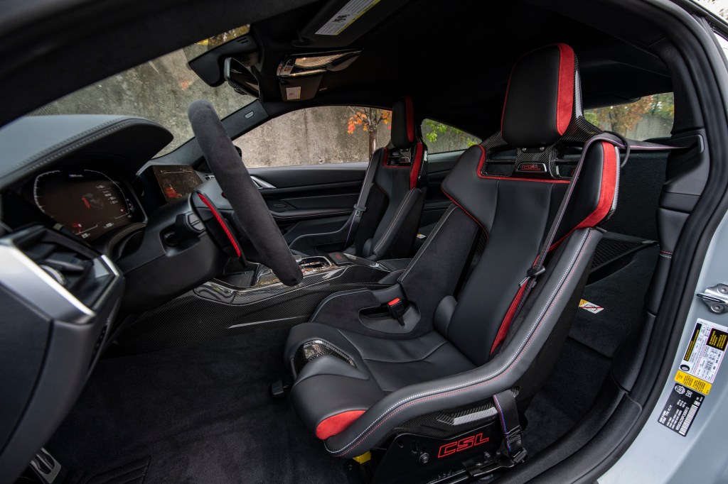 Unlike the M4 GTS from 2016, the CSL ethos is all about saving weight – it does stand for Competition, Sport, and Lightweighting, after all. Compared to the standard M4 Competition, a total of 108 kg kilograms have been shaved off for a final curb weight of 1,651 kg – still a porker but not bad when you consider that it weighs the same as a Porsche 911 Turbo (992).