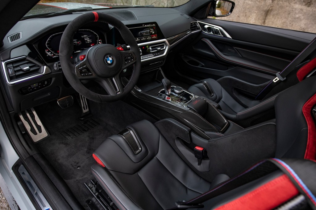 The ride height has been dropped by 7.6 mm compared to the M4 Competition, with optimized spring rates and camber angles for the CSL. Michelin Pilot Sport Cup 2 R tires are standard-fare but buyers can also opt for more street-friendly Michelin Pilot Sport 4 S tires at no cost instead. When all is said and done, the CSL will sprint from 0-100 km/h in 3.7 seconds, two-tenths faster than the M4 Competition RWD, but two-tenths slower than the AWD – such is the advantage of four driven wheels off the line.