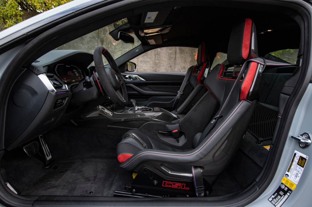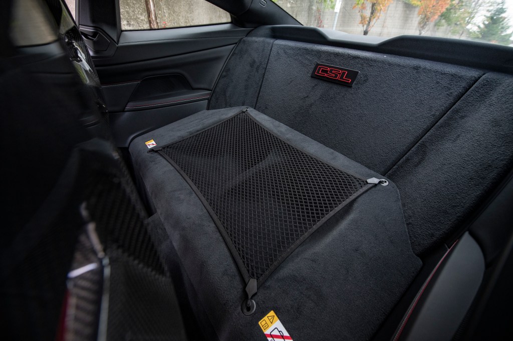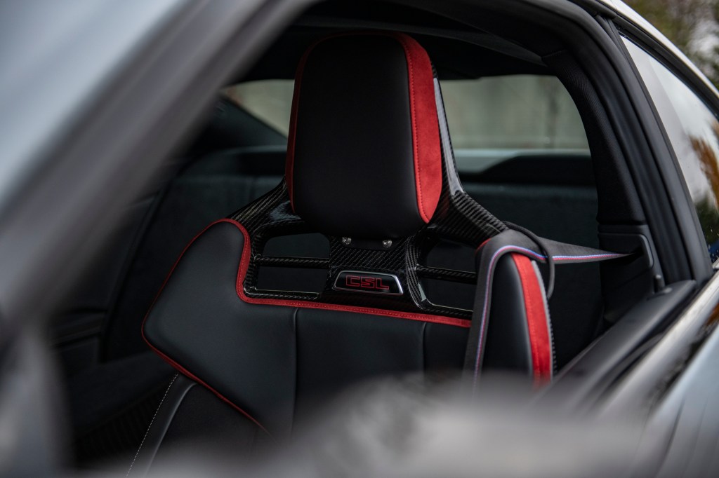 The interior also gets the CSL treatment, which is similar to the CS models: red paddle shifters, suede steering wheel, deletion of the center console, and full carbon bucket seats without recline, heating, or ventilation, and need a torque screw to adjust the seat height. If you prefer a bit of comfort, you can still equip your CSL with the heavier, heated bucket seats with electric adjustment for no added cost, but they weigh about 14 kg more. We think BMW could have even gone to more extremes with the CSL, seeing as how limited it is. Why not add lighter and thinner windows, door strap pulls, hollow out the door panels until they are bare, and a manual transmission too, which should be much lighter than this torque converter.